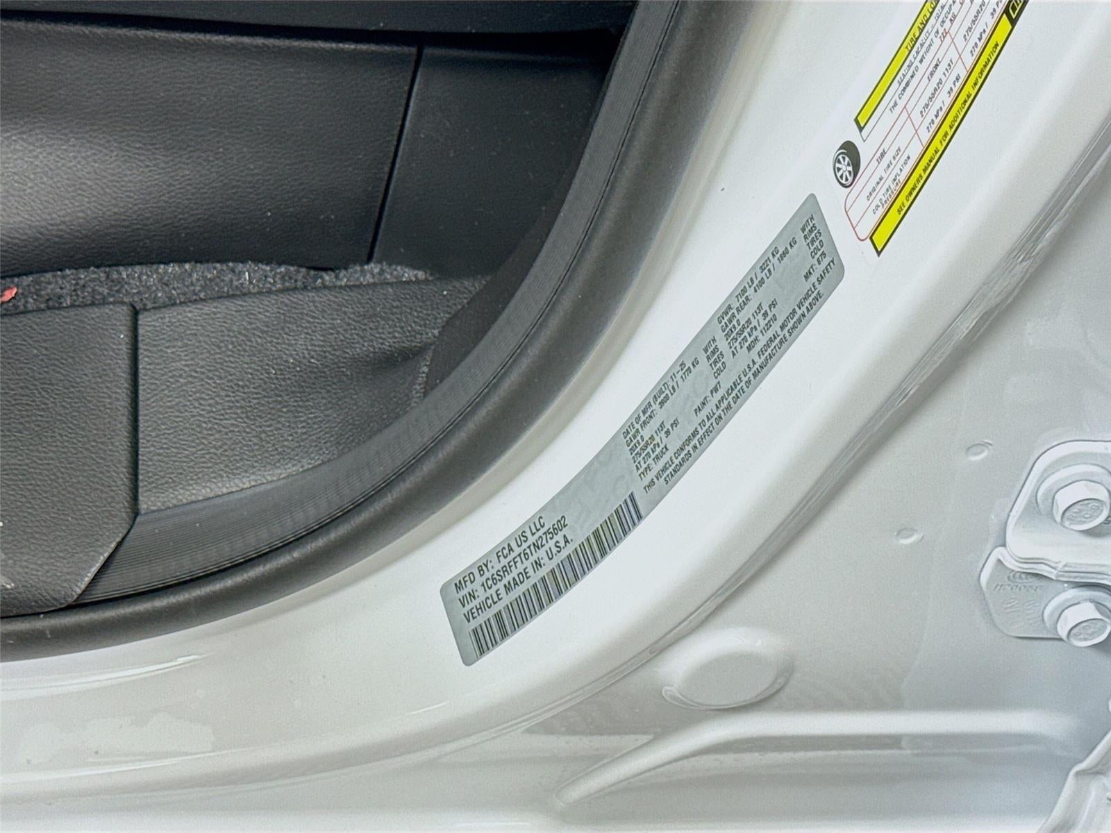 ENGINE: 5.7L V8 HEMI MDS VVT ETORQUE, TRANSMISSION: 8-SPEED AUTOMATIC (8HP75), QUICK ORDER PACKAGE 27Z BIG HORN, 3.92 REAR AXLE RATIO, WHEELS: 20"" X 9"" ALUMINUM CHROME CLAD (WRK), TIRES: 275/55R20 OWL ALL SEASON, BRIGHT WHITE CLEARCOAT, BLACK, DELUXE CLOTH BUCKET SEATS, GVWR: 7,100 LBS, BIG HORN LEVEL 1 EQUIPMENT GROUP, TRAILER BRAKE CONTROL, 33 GALLON FUEL TANK, FRONT LICENSE PLATE BRACKET, MOPAR FRONT & REAR RUBBER FLOOR MATS